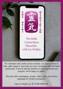 The Reiki Association members have access to the Reiki Care Service which offers Distance Healing to member, friends and family. This service is accessed through the button below, or by contacting the Enquiry Line on +44 (0)770 4270727, or if you need to speak to some one directly, contact Liz Watkin on +44 (0)7398 500159.